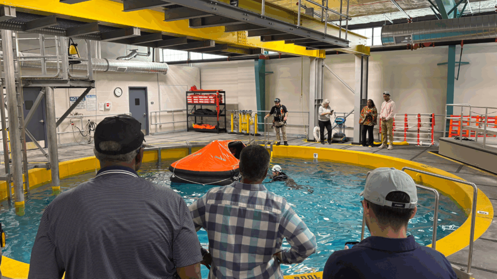 Later in the day, attendees visited New Bedford, Massachusetts, where Mayor Jon Mitchell and New Bedford Ocean Cluster Director Jennifer Downing showcased the city’s leadership in fisheries and offshore wind, and how the Cluster works to support the nation’s only federally designated Ocean Tech Hub. The day concluded with a visit to Bristol Community College’s National Offshore Wind Institute, where students demonstrated turbine training simulations and discussed workforce development opportunities.