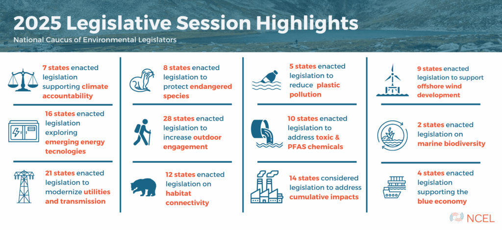 Thank you to our members and partners for making 2025 a year of momentum, growth, and state-led solutions. The summary below highlights NCEL’s 2025 accomplishments, as well as key environmental trends from the state level.